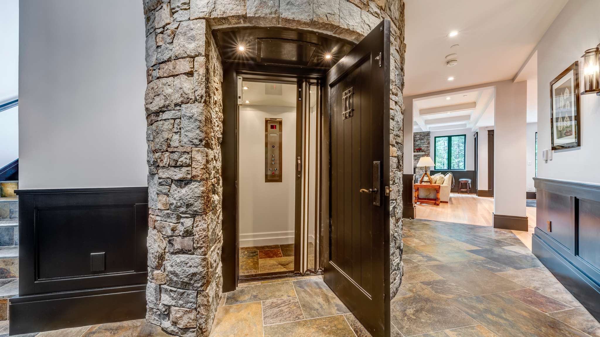 You will feel like you have entered a James Bond movie in this fortress like home. The home features 90 foot old growth beams coursed from the Queen Charlotte Islands and a stone encased elevator that covers three floors. This is a home you won’t feel like leaving with the media room, billiards table, ping pong table, hot tub, steam shower, sauna and mountain views.