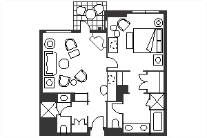 - One Bedroom Suite with Separate Bedroom